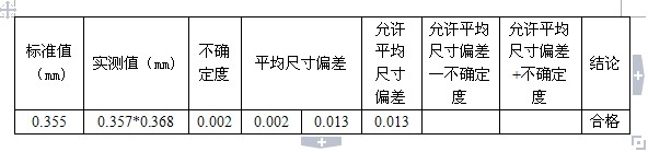 允許平均尺寸偏差的值-不確定度<平均尺寸偏差的值<允許平均尺寸偏差的值+不確定度(待定)