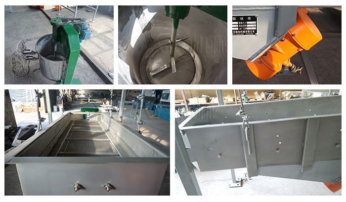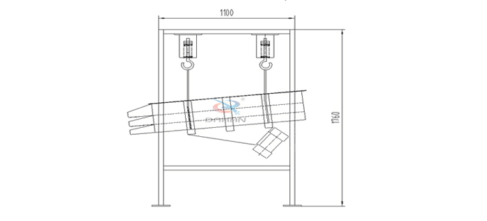 整個設備由篩箱、網架、篩網、2臺臥式振動篩電機、減震彈簧、進出料口、上蓋組成,除此之外還有高度可按需求定制的支架通過四個吊鉤把整個設備吊掛起來使其處于懸空狀態(tài)。